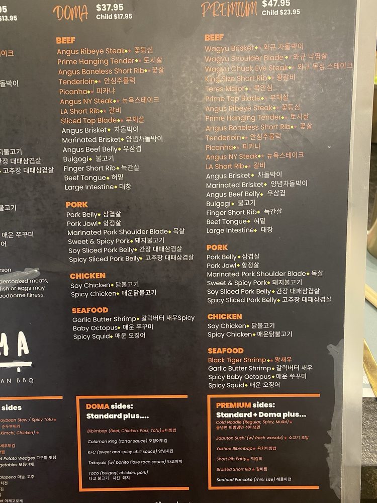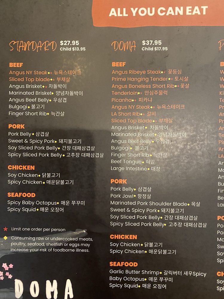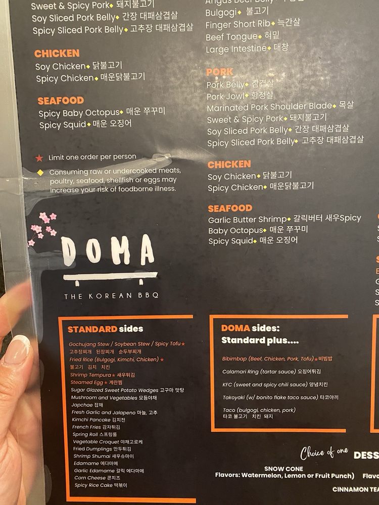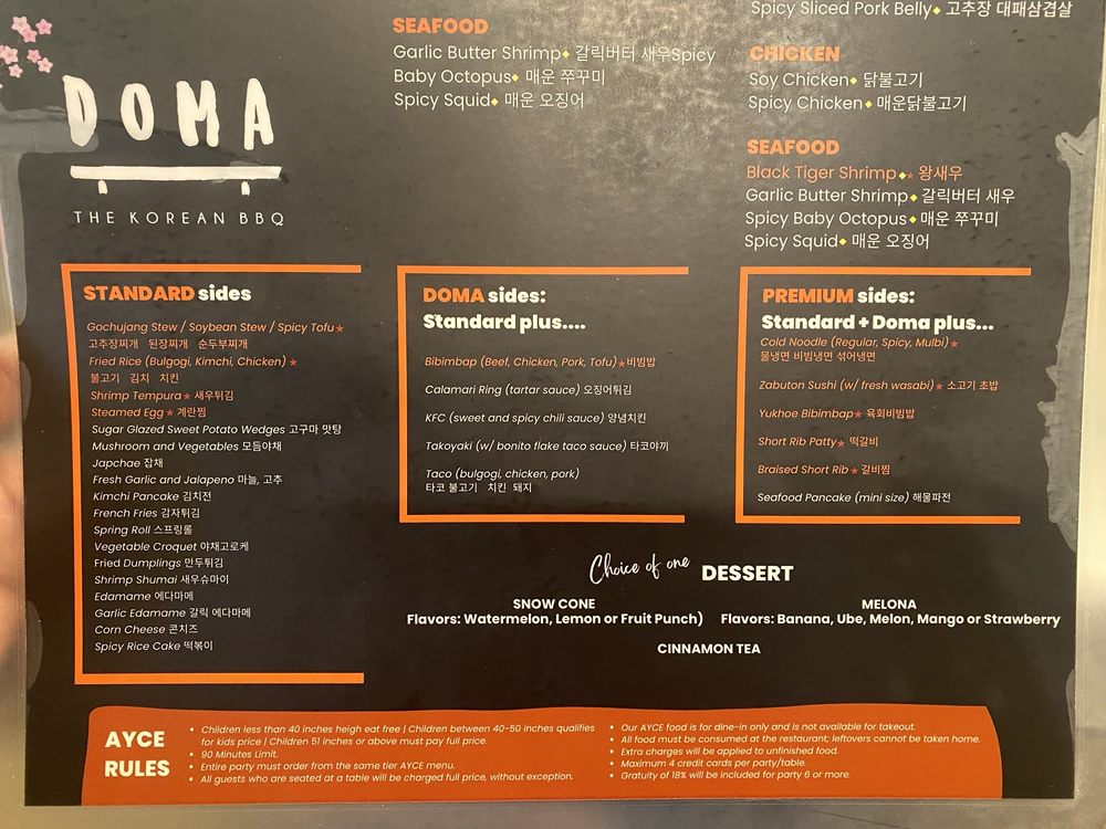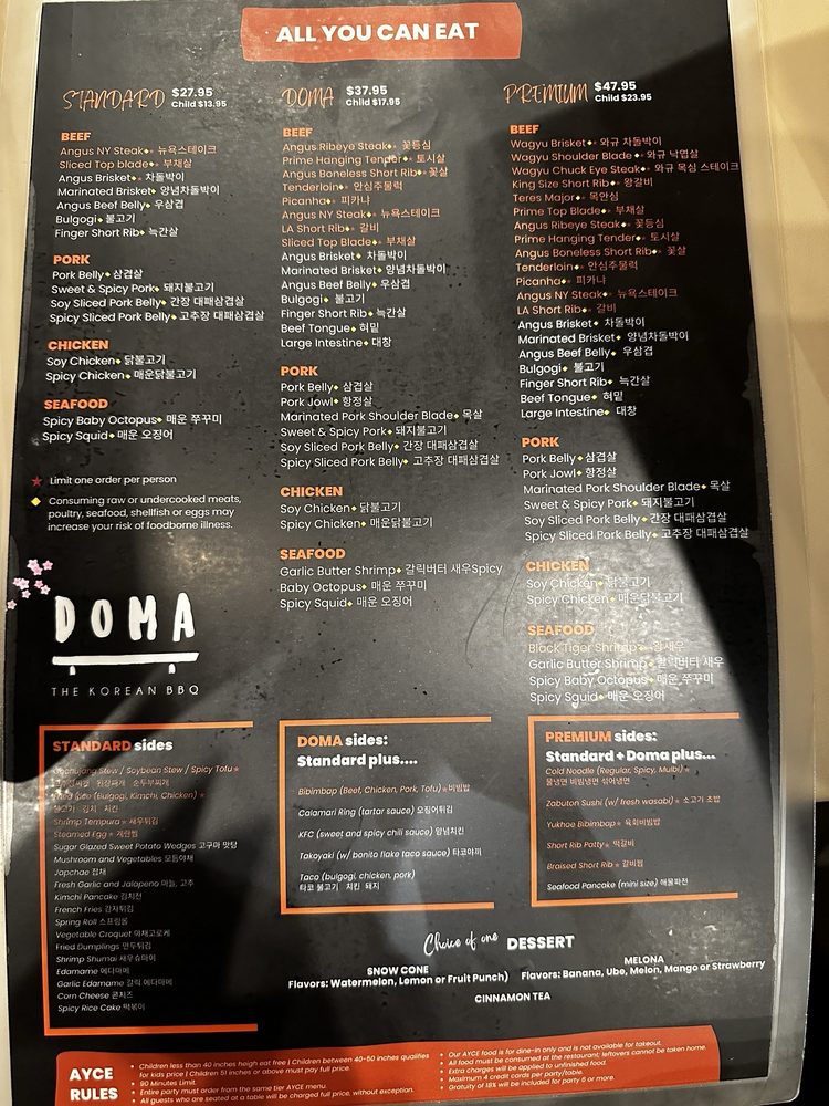 Doma The Korean BBQ in Las Vegas offers a vast selection of meat a la carte, entrees, and All-You-Can-Eat options. The restaurant prides itself on high-quality choices like beef belly, angus brisket, and LA Kalbi. Customers rave about the delightful side dishes such as calamari and kimchi fried rice. The ambiance is upscale, with attentive and friendly staff. Special mentions go to the cold noodles and the Korean Cinnamon drink, which are must-tries. The restaurant provides a clean and crisp dining experience, making it stand out from other AYCE spots in the area. With ample parking, spacious seating, and a variety of payment options including cryptocurrency, Doma caters to a diverse clientele. Whether you're a fan of Korean BBQ, sushi, or seafood BBQ, Doma The Korean BBQ promises an unforgettable dining experience.